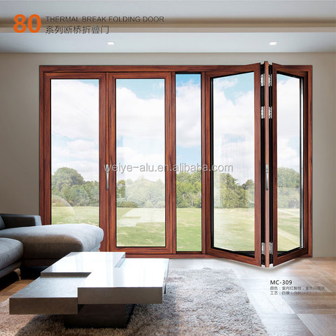 Luxury Aluminum Glass Thermal Break Folding Door with Wood Pattern Aluminum Profiles Product