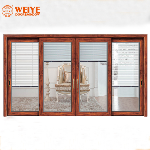 New Wood Color Aluminum Alloy Frames Glass Sliding Doors Wood Color Aluminum Profiles